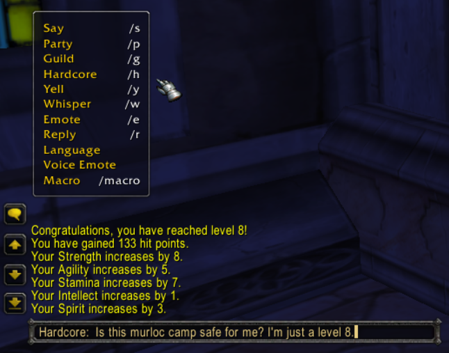 You can access hardcore channel by typing a chat command /h now, if you're hardcore player. This channel is disabled at level 60 if you are not an Inferno Mode player and therefore immortal again.